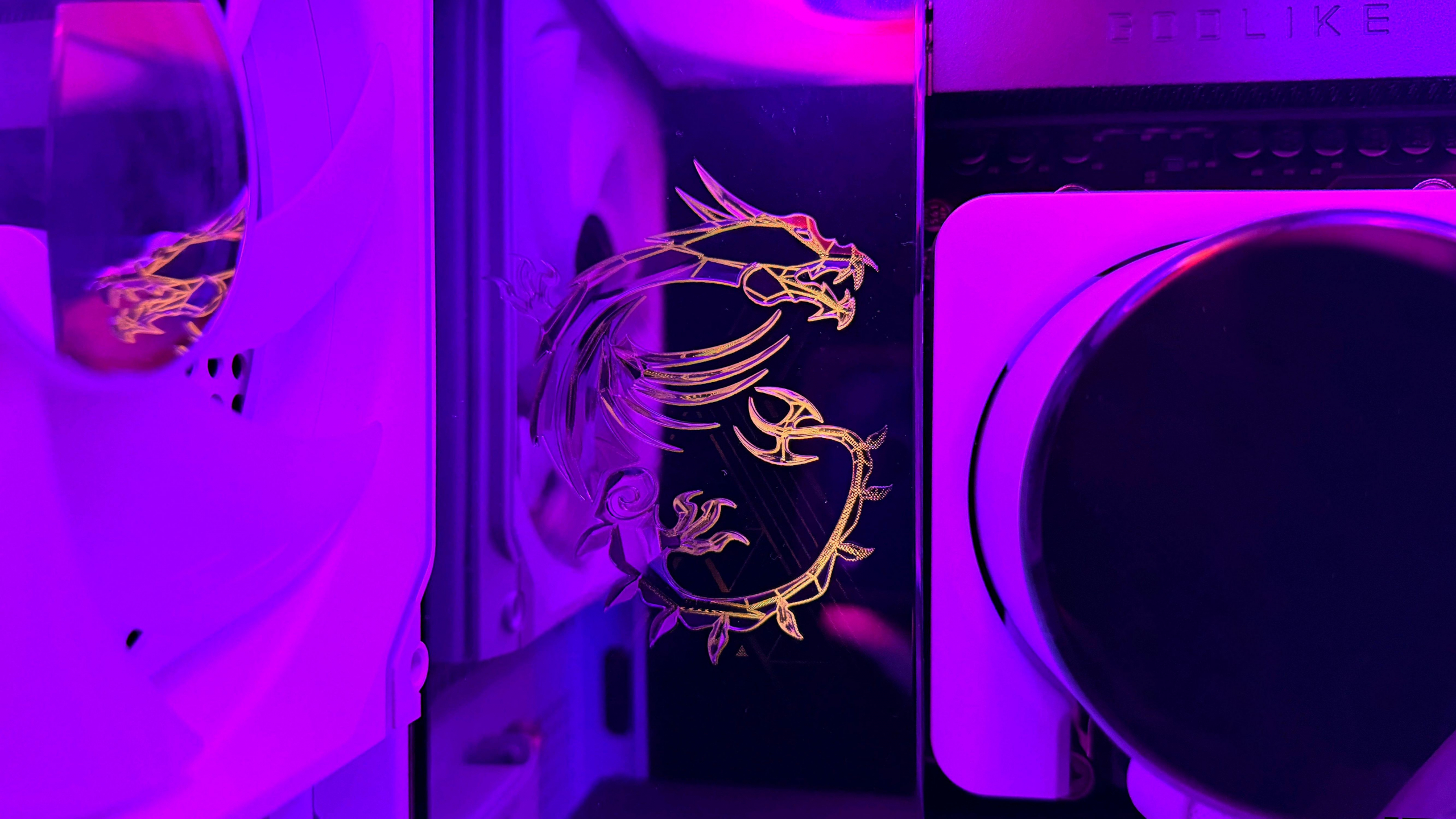 Украшением большого радиатора является огромный фирменный дракон MSI, который сияет на глянцевой зеркальной поверхности. Будущие владельцы смогут использовать свой индивидуальный нумерованный радиатор с дисплеем. Под него есть специальный разъем, как и в отдельном кейсе, где он может работать, подключившись через Type-C.