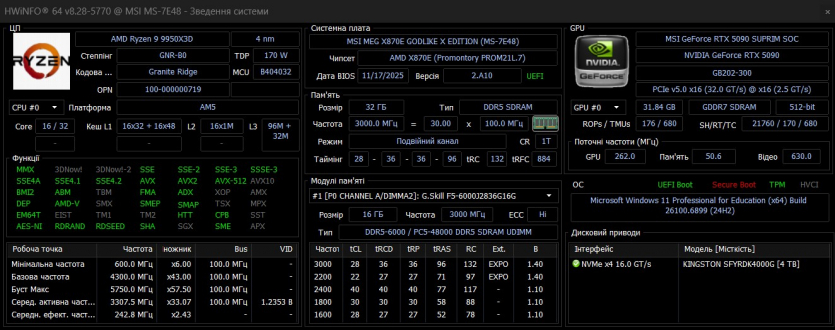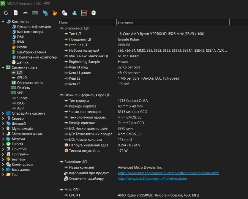 - Процессор AMD Ryzen 9 9950X3D;