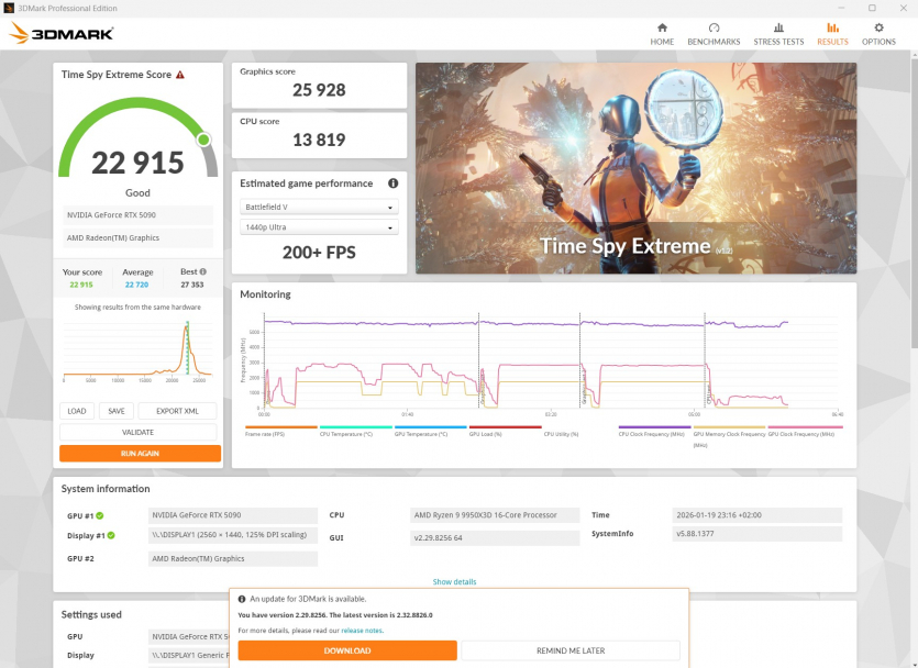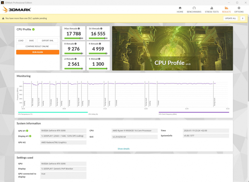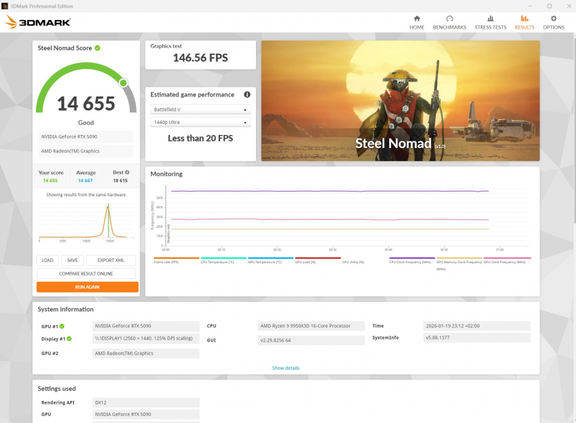 Steel Nomad Score — 14 655 Time Spy — 22 915 CPU Max Threads — 17 778 CPU One Thread — 1300 |