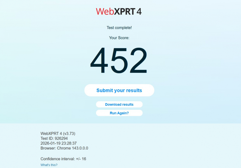 | WebXPRT 4 | 452 |