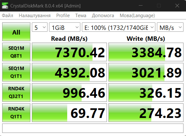Само охлаждение работает не хуже, чем массивный родной радиатор SSD, который до этого обдувался корпусными вентиляторами. Нагрев Kingston FURY Renegade 3D NAND TLC 4TB не превышал 60 °C в обоих сценариях.