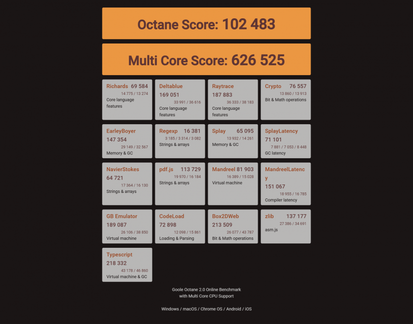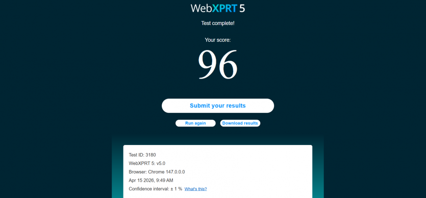 | WebXPRT 5 | 97 | 96 |