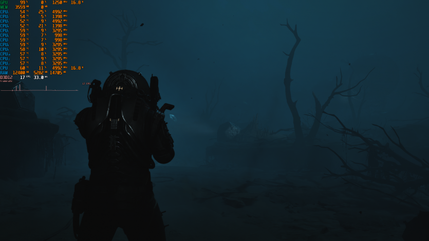 Cronos: The New Dawn показывает скромные 17 FPS. Тут уже стена. Даже максимальное снижение качества и апскейл не спасают ситуацию.