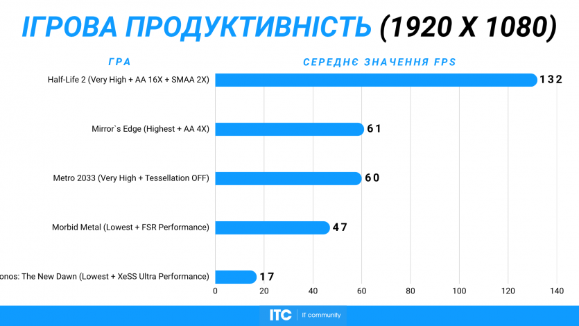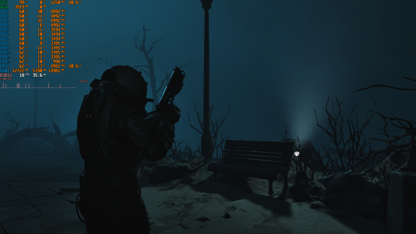Morbid Metal едва-едва дает 47 FPS. И тут уже начинается реальность. Даже с минимальными настройками и агрессивным FSR игра не дотягивает до комфортного уровня.