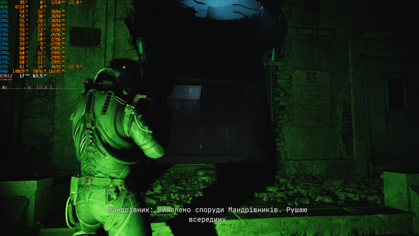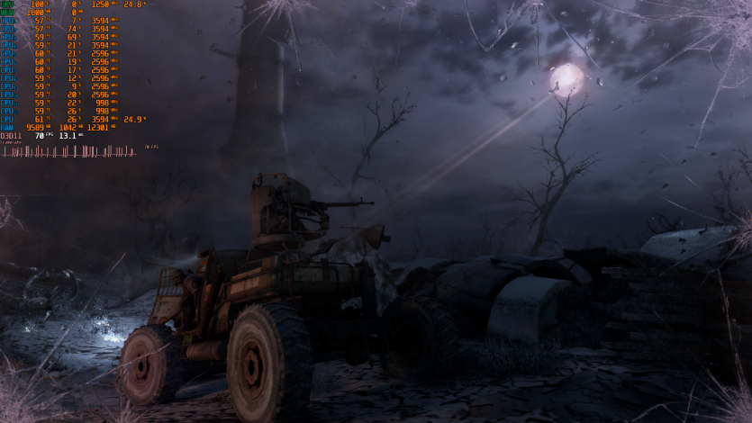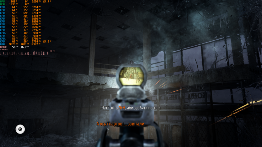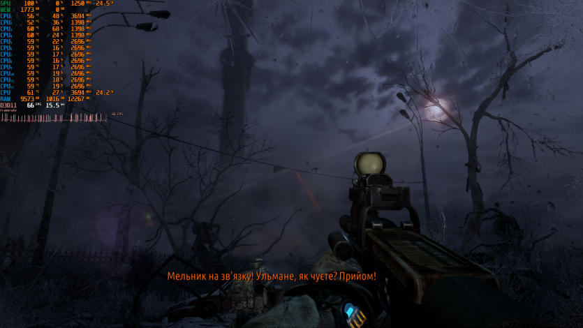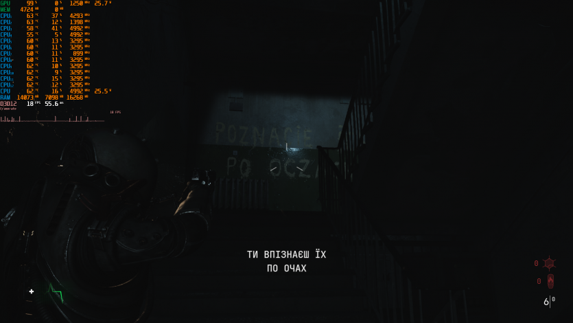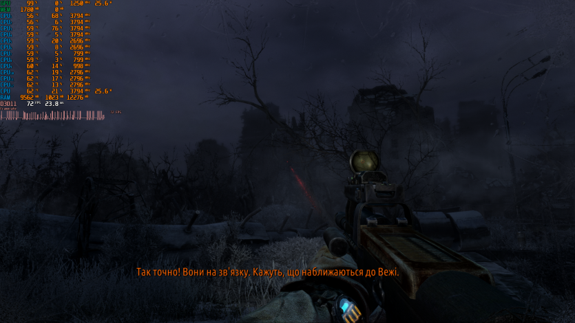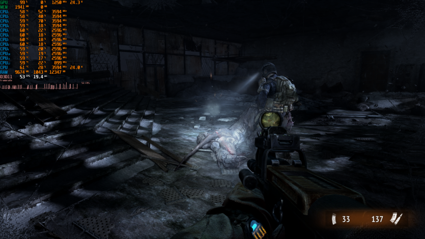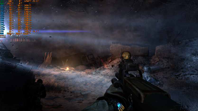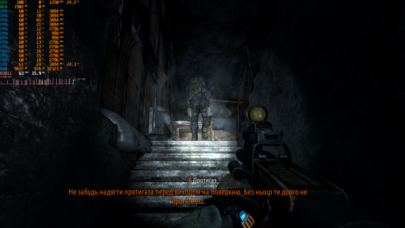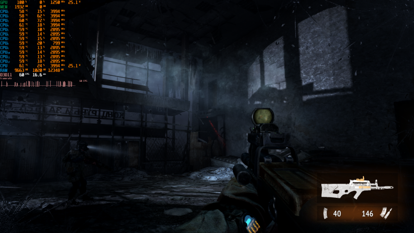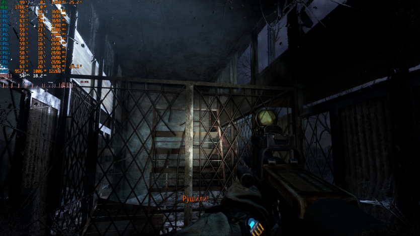 Metro 2033 выдает стабильные 60 FPS. Когда-то эта игра была эталоном тяжелого движка, который валил даже топовые ПК. Теперь она скорее показывает, что современные iGPU уже научились переваривать старые AAA без драматических просадок, хотя запаса тут ноль.