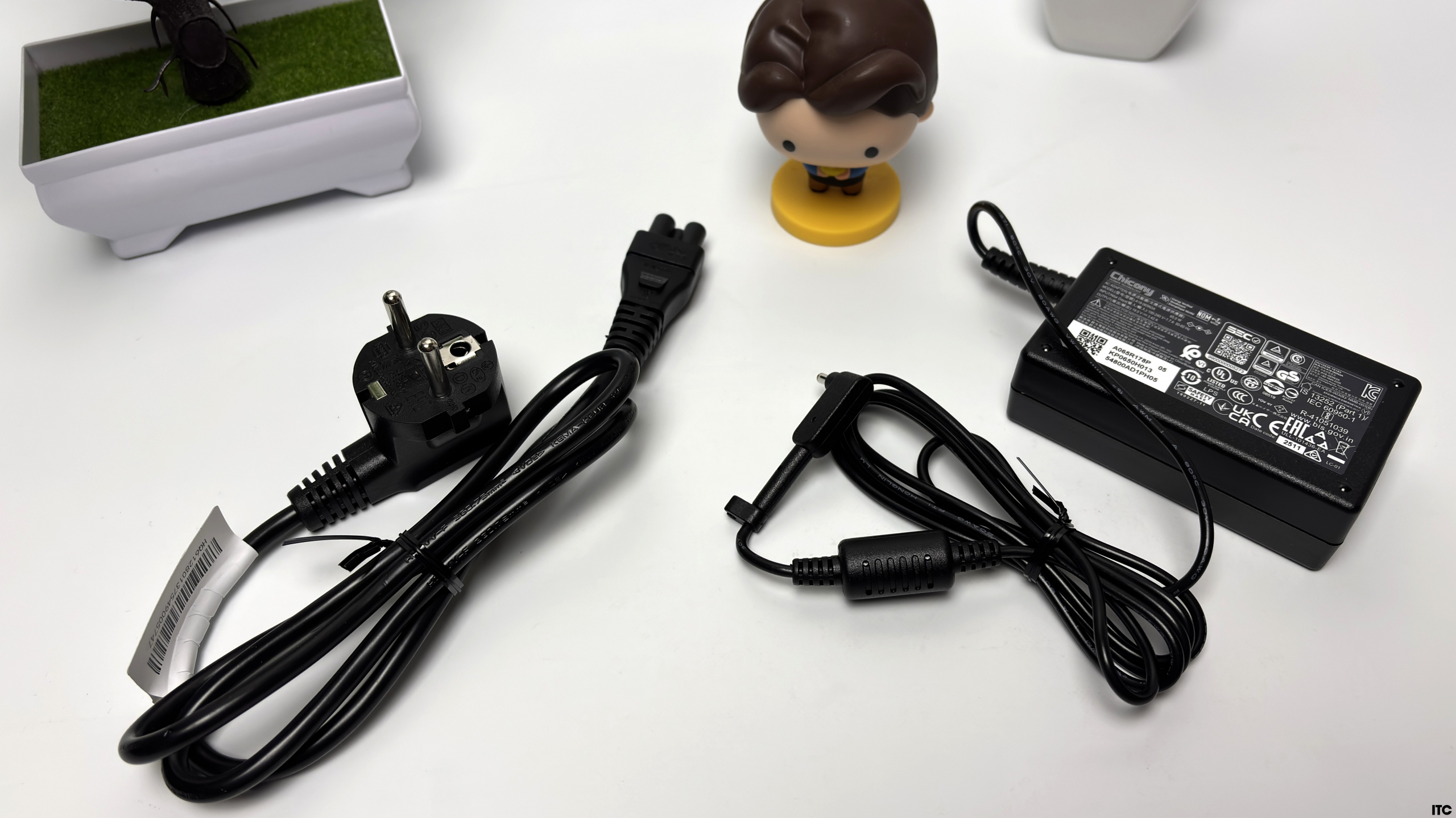 Комплект поставки ограничивается базовым набором: сам ноутбук, адаптер питания на 65 Вт и сетевой кабель. Никаких переходников, чехлов или даже символических бонусов не предусмотрено.