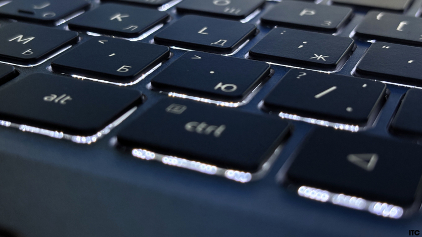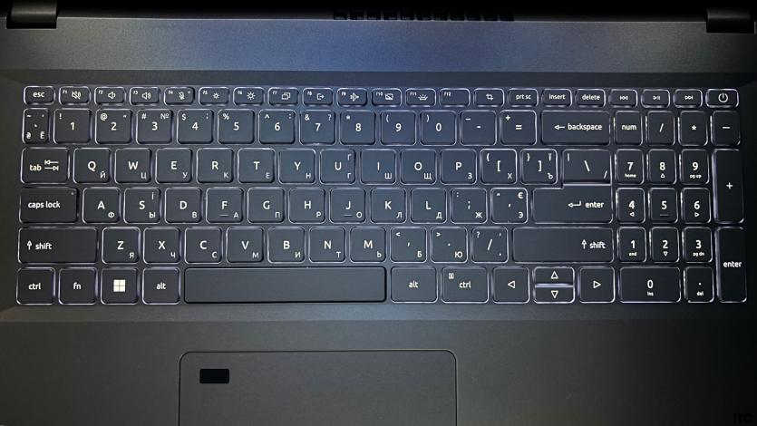Подсветка есть, но базовая, просто чтобы не печатать вслепую в темноте. Сканер отпечатков пальцев интегрирован в тачпад. И вот тут начинается мелкая, но регулярная проблема: расположение не самое удачное. Его легко зацепить во время обычной работы, а иногда приходится «целиться» пальцем, чтобы он корректно сработал.
