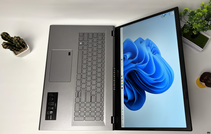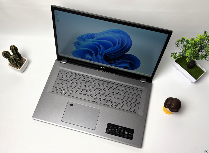 Acer Aspire A17 будто передает преемственность традиций всех «офисных» ноутбуков. Сдержанный серый корпус, минимум декоративных элементов и никаких попыток выдать себя за что-то подороже. В вакууме — типичный рабочий инструмент без характера.
