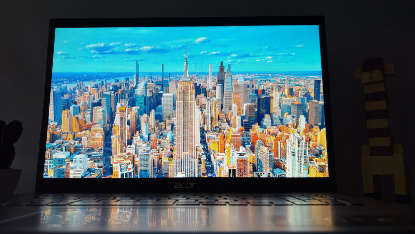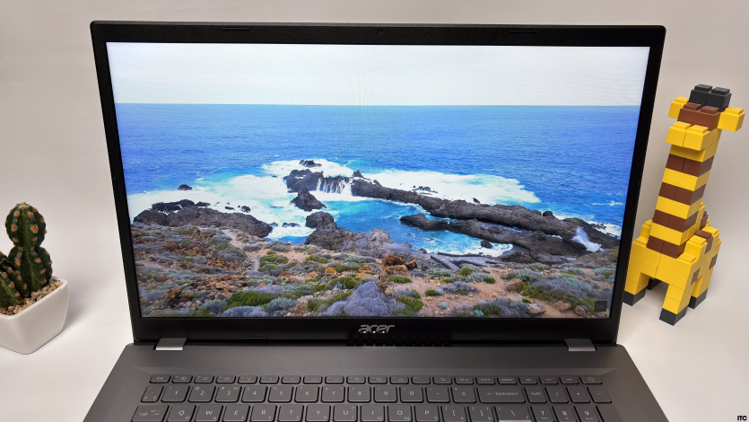 Частота обновления Acer Aspire A17 — стандартные 60 Гц. Прокрутка выглядит привычно, но после более плавных экранов разница ощущается сразу. Яркость в районе 250 нит. Для помещения этого достаточно, но возле окна или под прямым светом запаса уже не хватает.