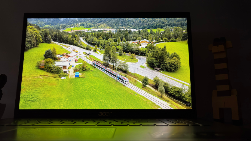 Зато с цветами все более-менее адекватно. Камера не пытается превратить лицо в морковь или серую массу, как это иногда бывает в бюджетных моделях. Баланс белого держится стабильно, и это плюс. Есть базовые фишки на уровне Windows Studio Effects: размытие фона, автофрейминг. Работают они нормально, но это скорее заслуга платформы Intel, чем самого ноутбука.