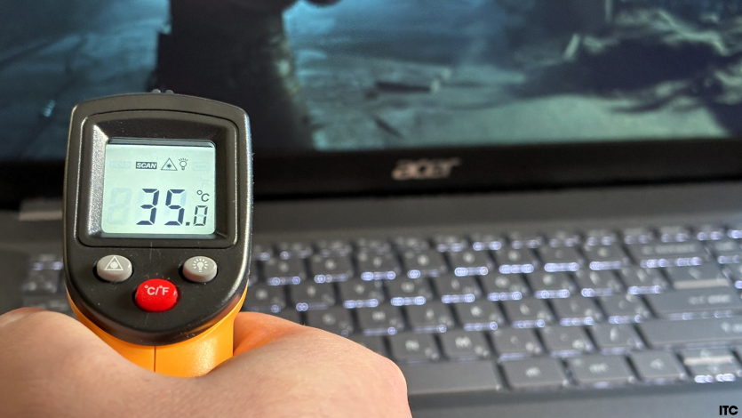 Корпус Acer Aspire A17 через полчаса игры нагревается до 35°C.
