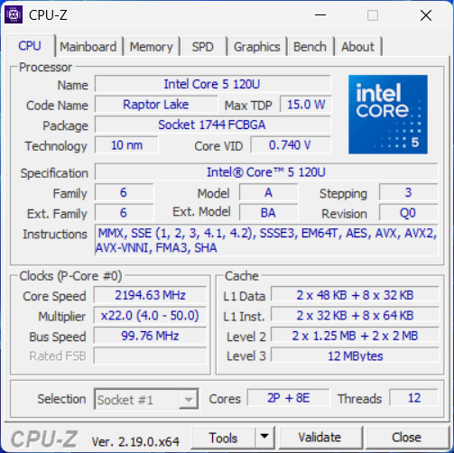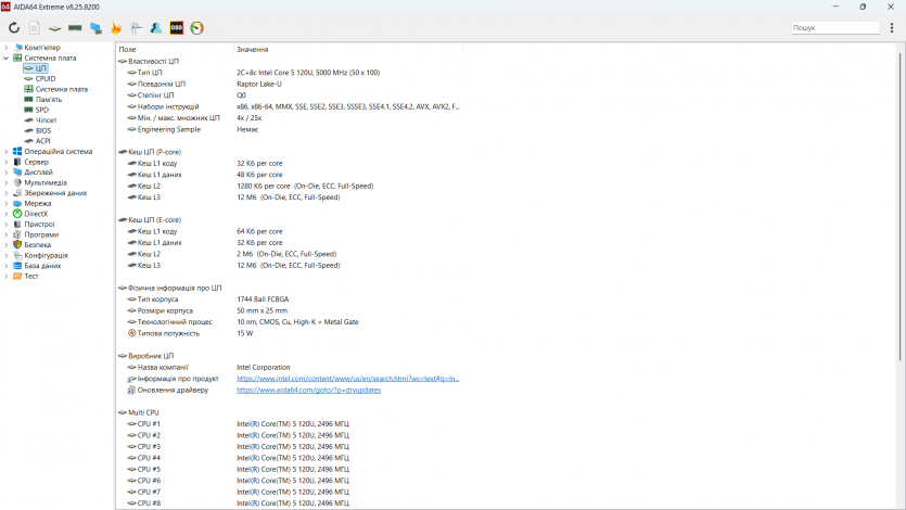 | Процессор | Intel Core 5 120U (0.9 — 5.0 ГГц) |