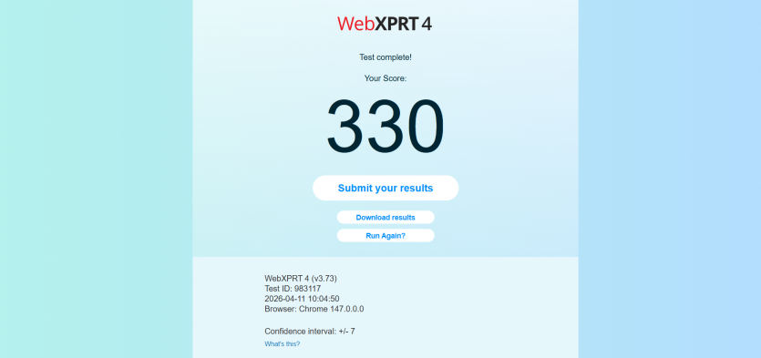 | WebXPRT 4 | 330 | 311 |
