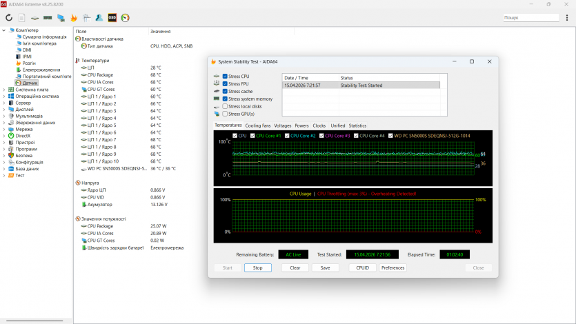 Температуры процессора под длительной нагрузкой держатся приблизительно на уровне 68°C.