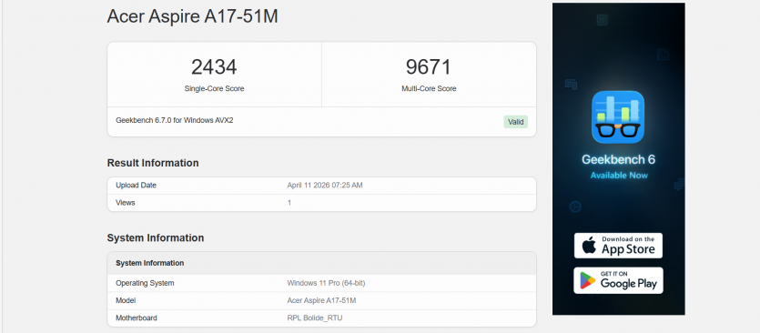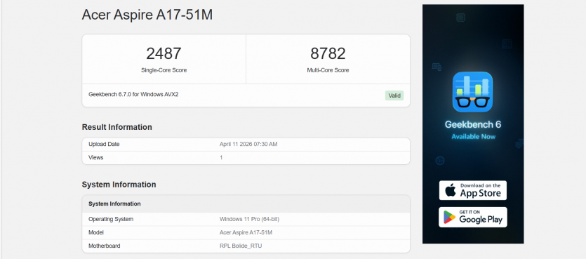 | GeekBench 6 (Single, Multi) |
