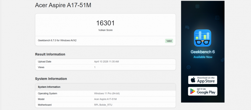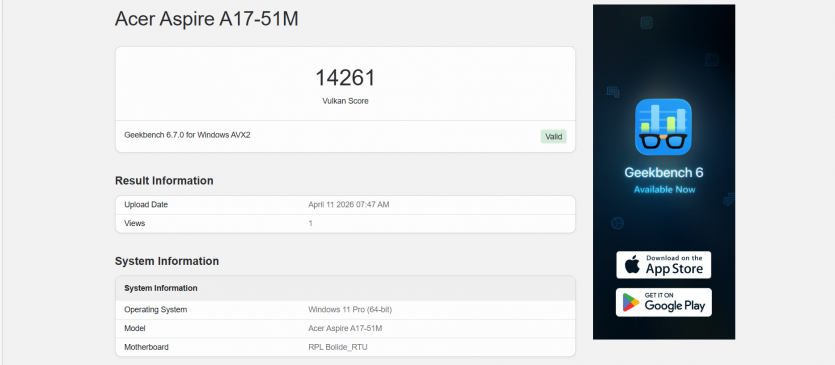 | GeekBench 6 (Intel UHD 730) |