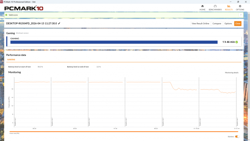 Cinebench подтверждает общую логику: single-core почти идентичен, multi-core чуть ниже АКБ, но без резких провалов. Acer Aspire A17 держит одинаковое поведение независимо от питания, жертвуя пиковой производительностью ради стабильности.
