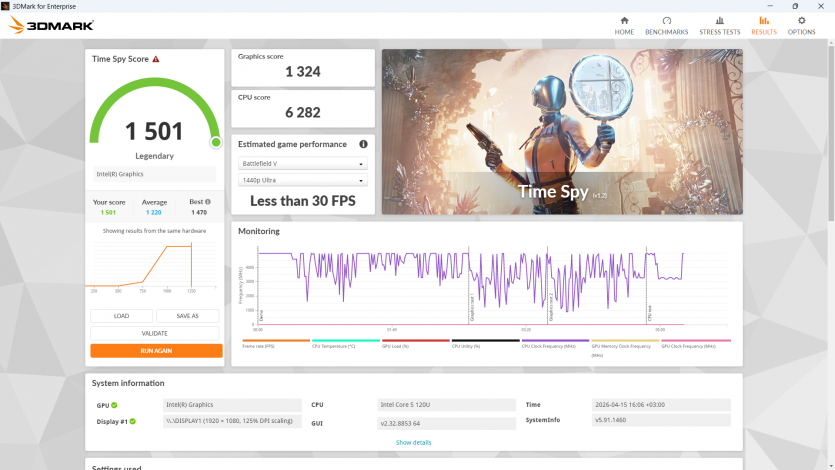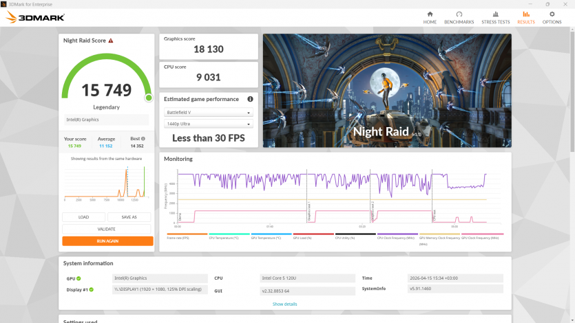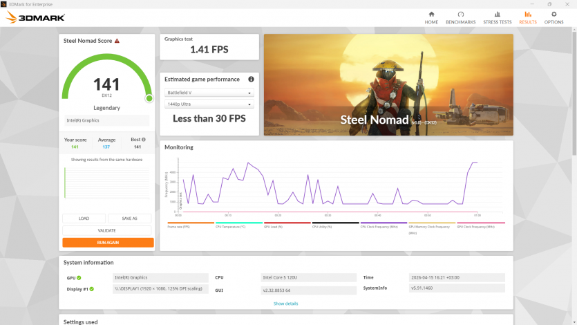 Когда смотреть в табличку в Excel становится невыносимым, хочется немного расслабиться. Core 5 120U с интегрированной графикой держится уверенно только там, где движок не требует современного уровня GPU-вычислений. То есть путь к ретро-геймингу открыт. Современные тайтлы для героя обзора являются настоящими «адскими муками».
