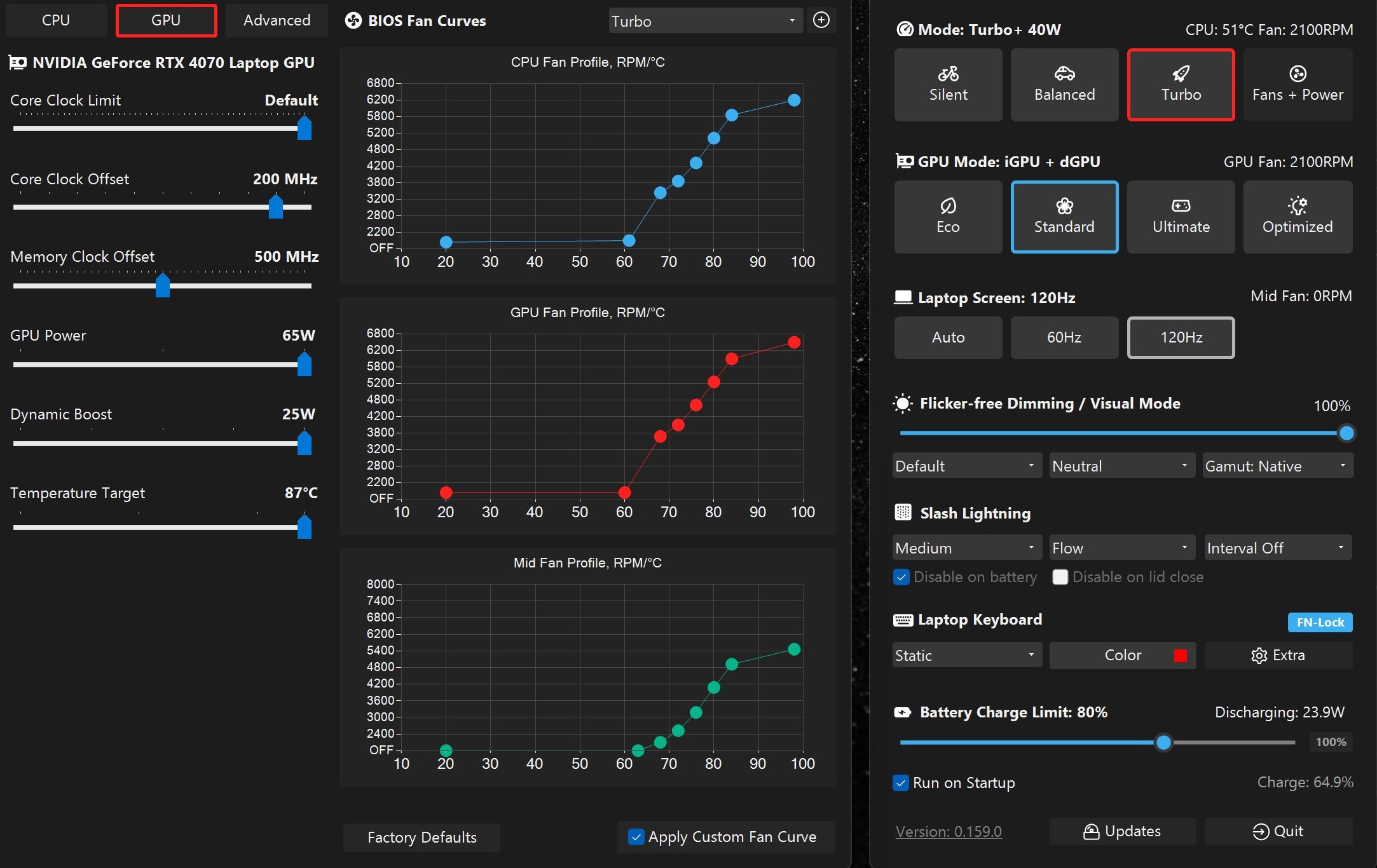 Есть возможность воспользоваться G-Helper — открытой утилитой от сообщества энтузиастов, предлагающей альтернативный способ управления ноутбуками ASUS ROG.