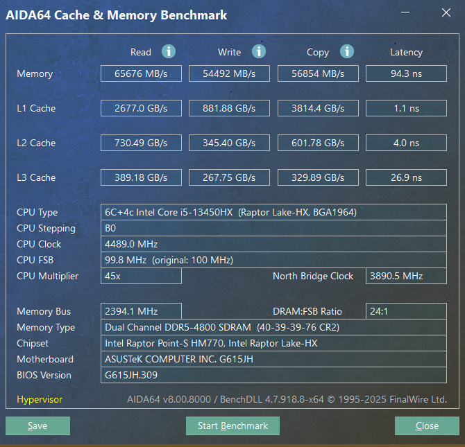 Read — 66 576 Write — 54 492 Copy — 56 584 Latency — 94.3 |
