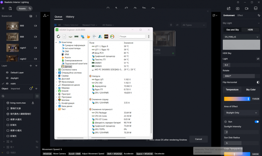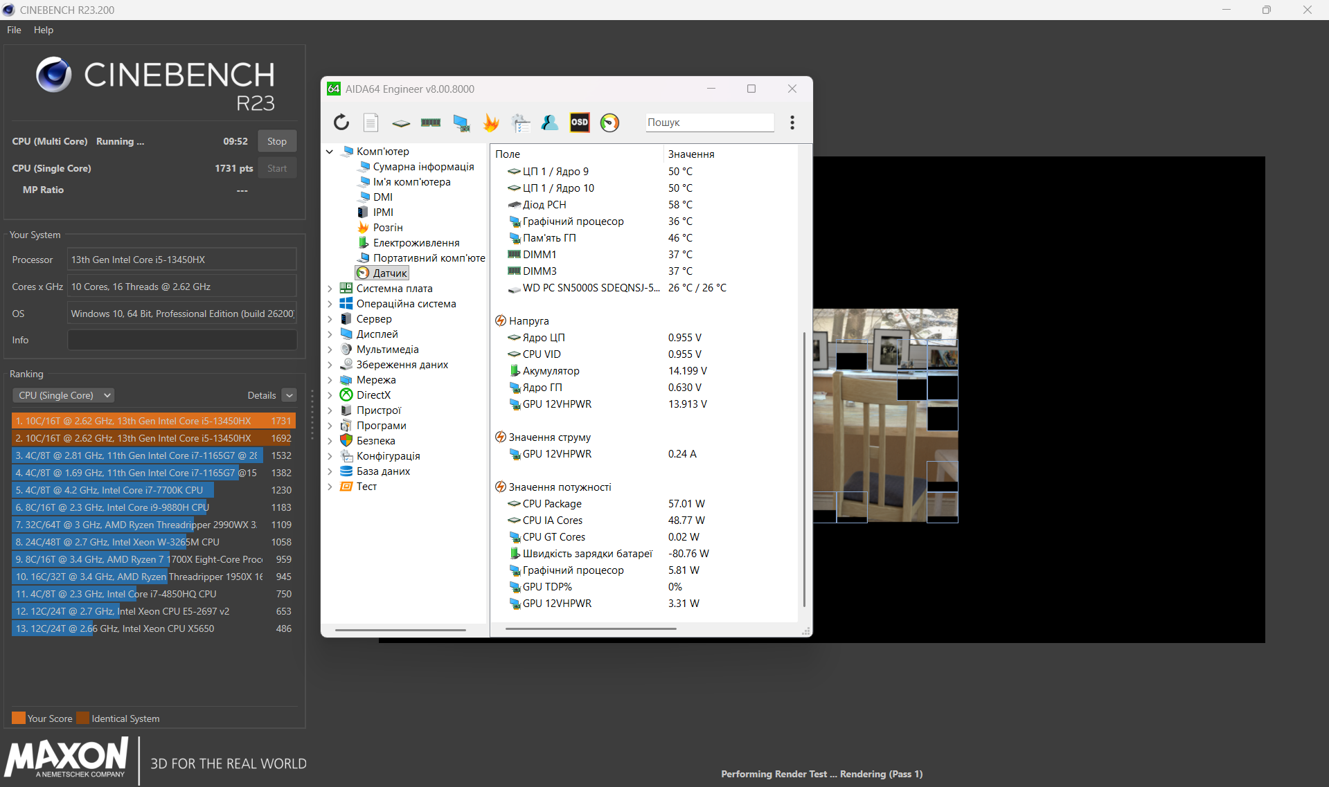 В рендеринге тестовой сцены (D5 Render) связка Intel Core i5-13450HX + RTX 5050 оказалась быстрее AMD Ryzen 5 240 + RTX 5060 (95 Вт).