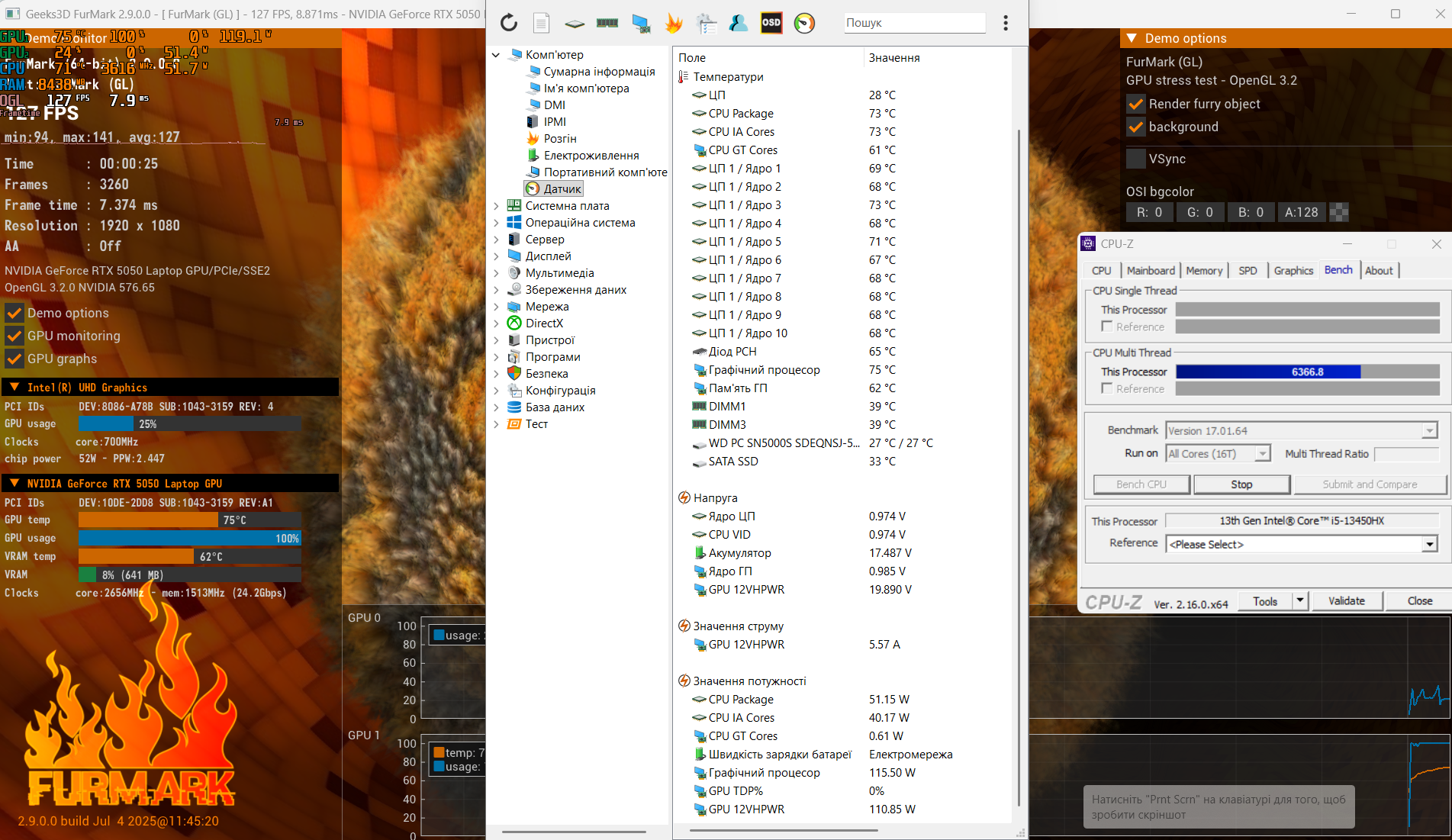Среди альтернатив от того же производителя бросается в глаза ASUS TUF Gaming F16 2025 FX608JH. Он дешевле примерно на десять тысяч гривен и предлагает похожий экран, хотя и с меньшей яркостью и немного хуже цветовым охватом. В целом он предлагает почти идентичную производительность, но не с такой эффективной системой охлаждения, что сказалось на весе и температурах.