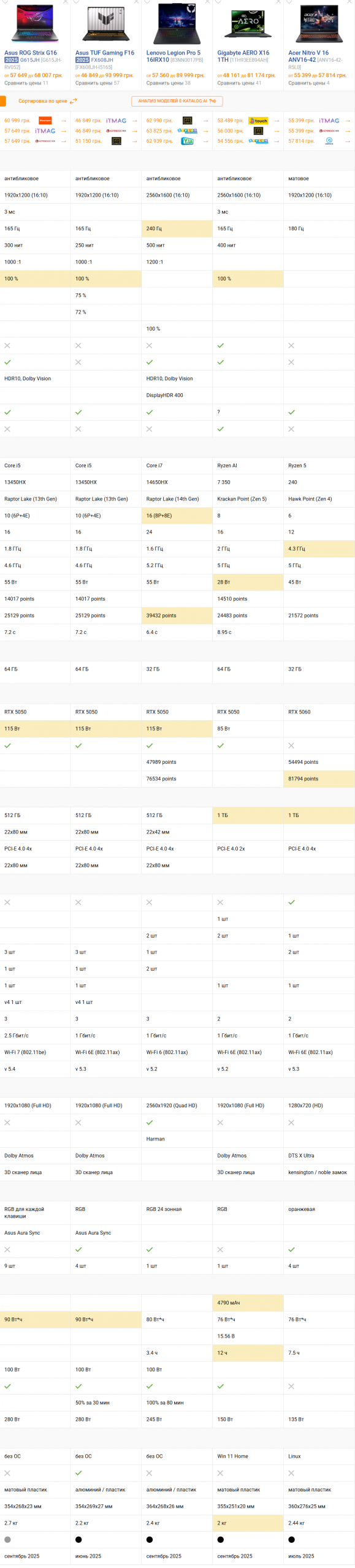 ASUS ROG Strix G16 (2025) можно приобрести по цене от 57 649 гривен. Среди конкурентов есть на что посмотреть — выбор широкий.