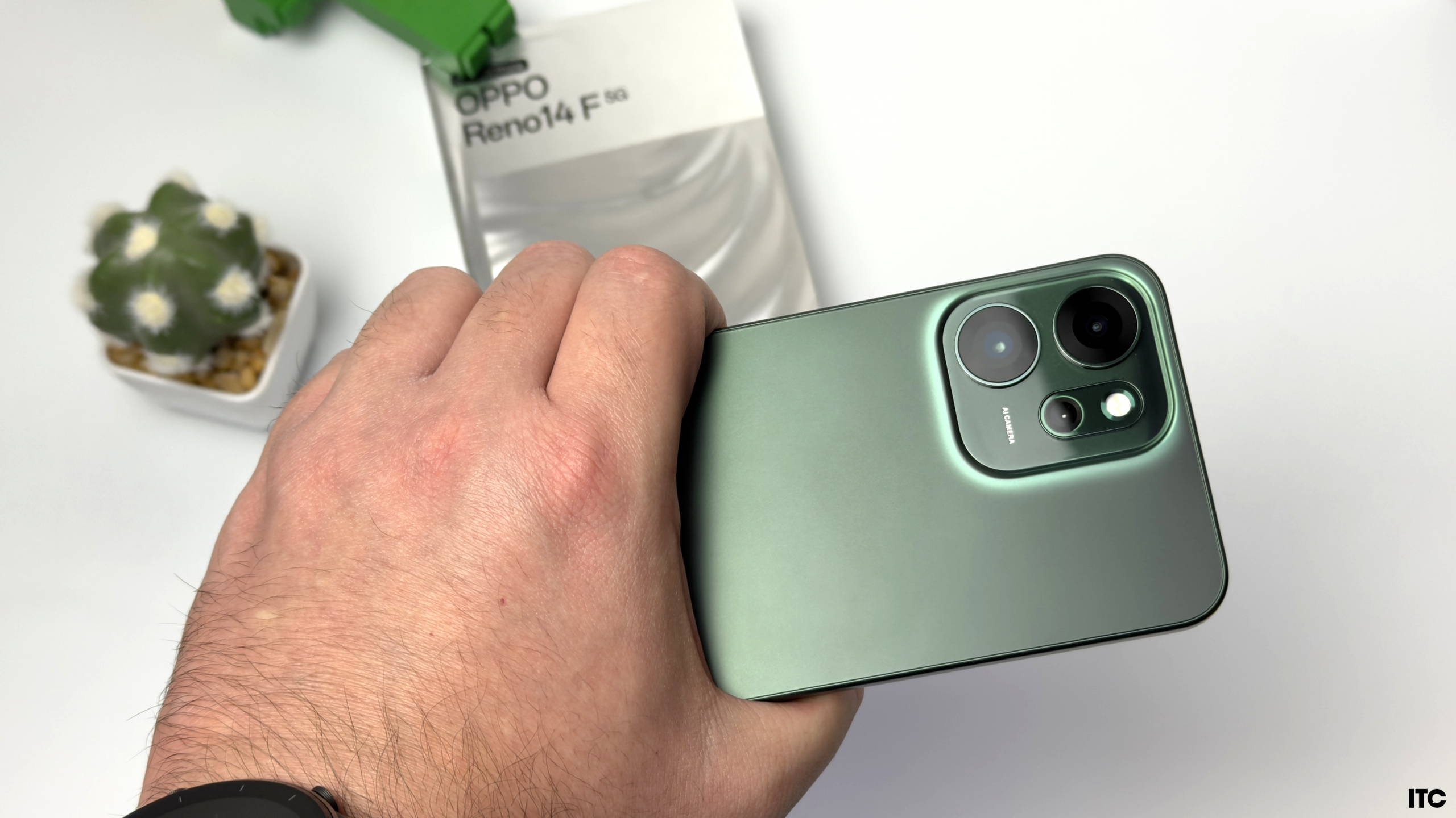 Спинка имеет матовое покрытие с градиентным переливом. Цветовая палитра не кричащая: Перламутровый голубой и Изумрудный зеленый добавляют современного вида и выглядят дороже, чем на самом деле стоит телефон. Это простой, но эффектный дизайнерский ход, который заметно выделяет OPPO Reno 14 F среди конкурентов своего класса. Мне вспомнился «градиентный» Samsung A36, который был у нас на обзоре еще летом.