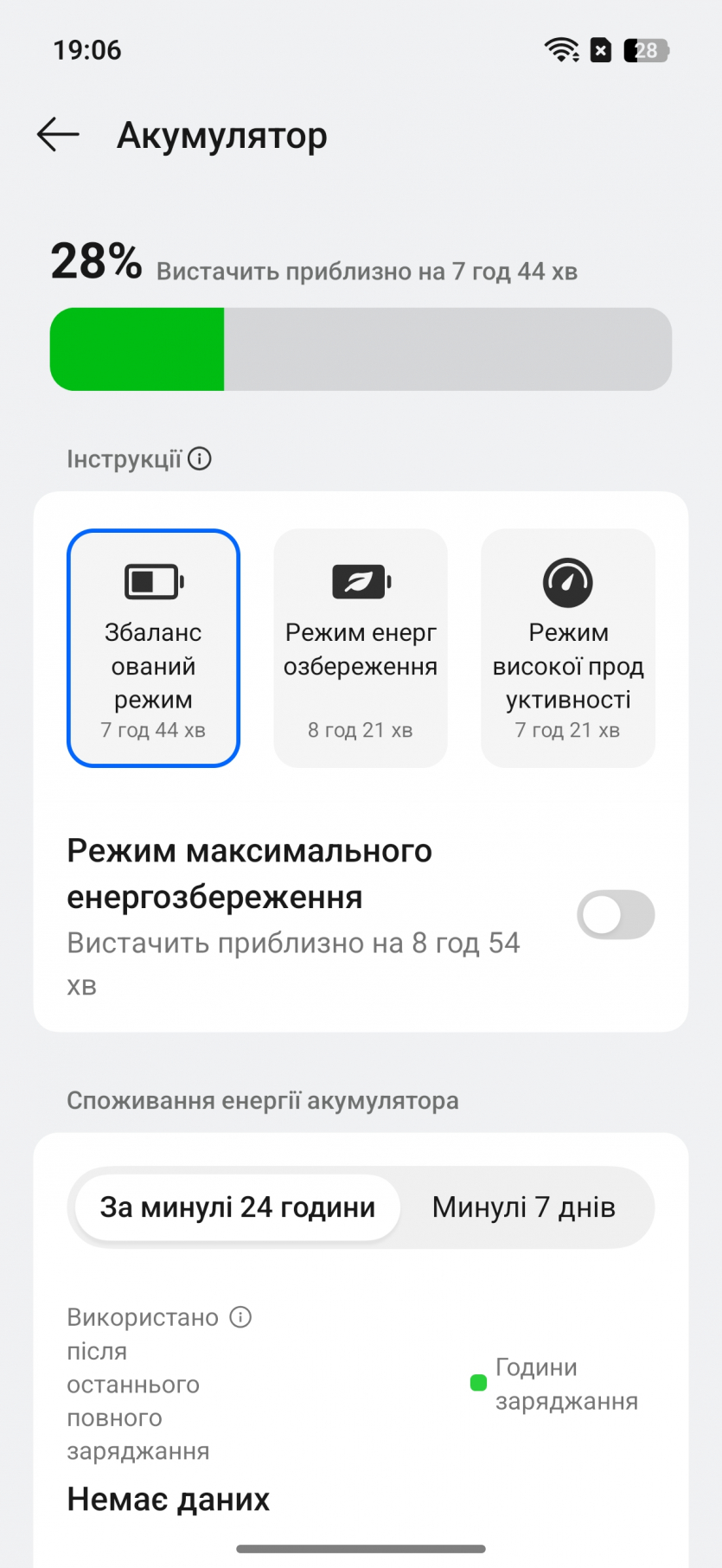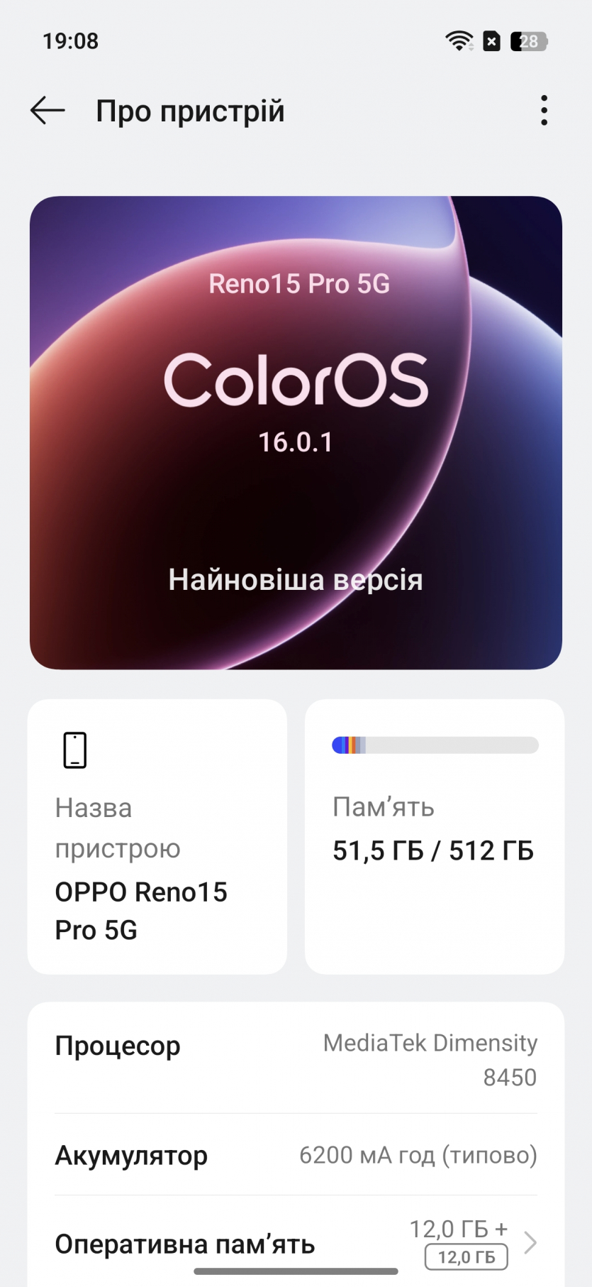 Dimensity 8450 в сочетании с ColorOS хорошо оптимизирует энергопотребление: энергоэффективные ядра Cortex-A55 берут на себя фоновые процессы, а мощные Cortex-A78 работают только при необходимости, поэтому OPPO Reno15 Pro практически не «ест» батарею в режиме ожидания. За ночь у меня уходило 2-3% заряда.