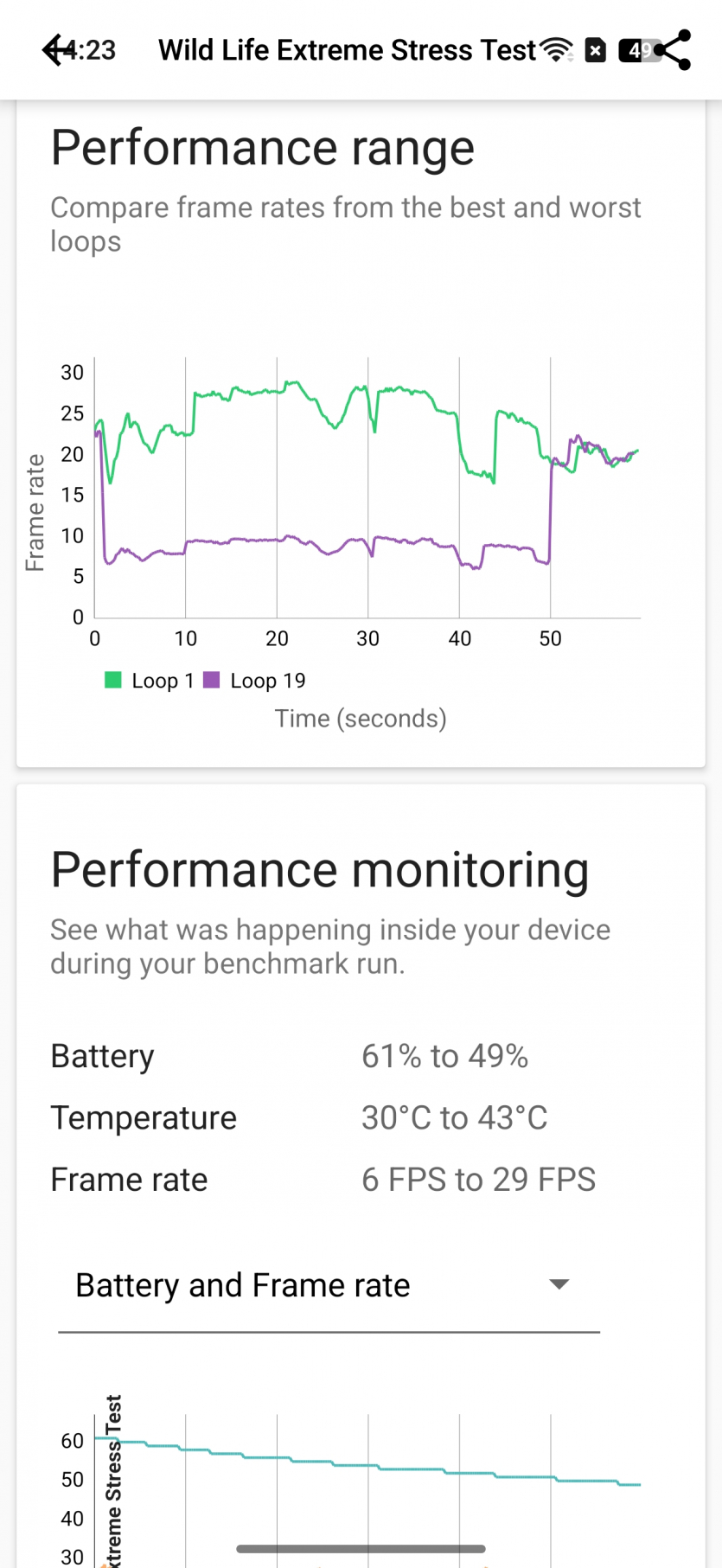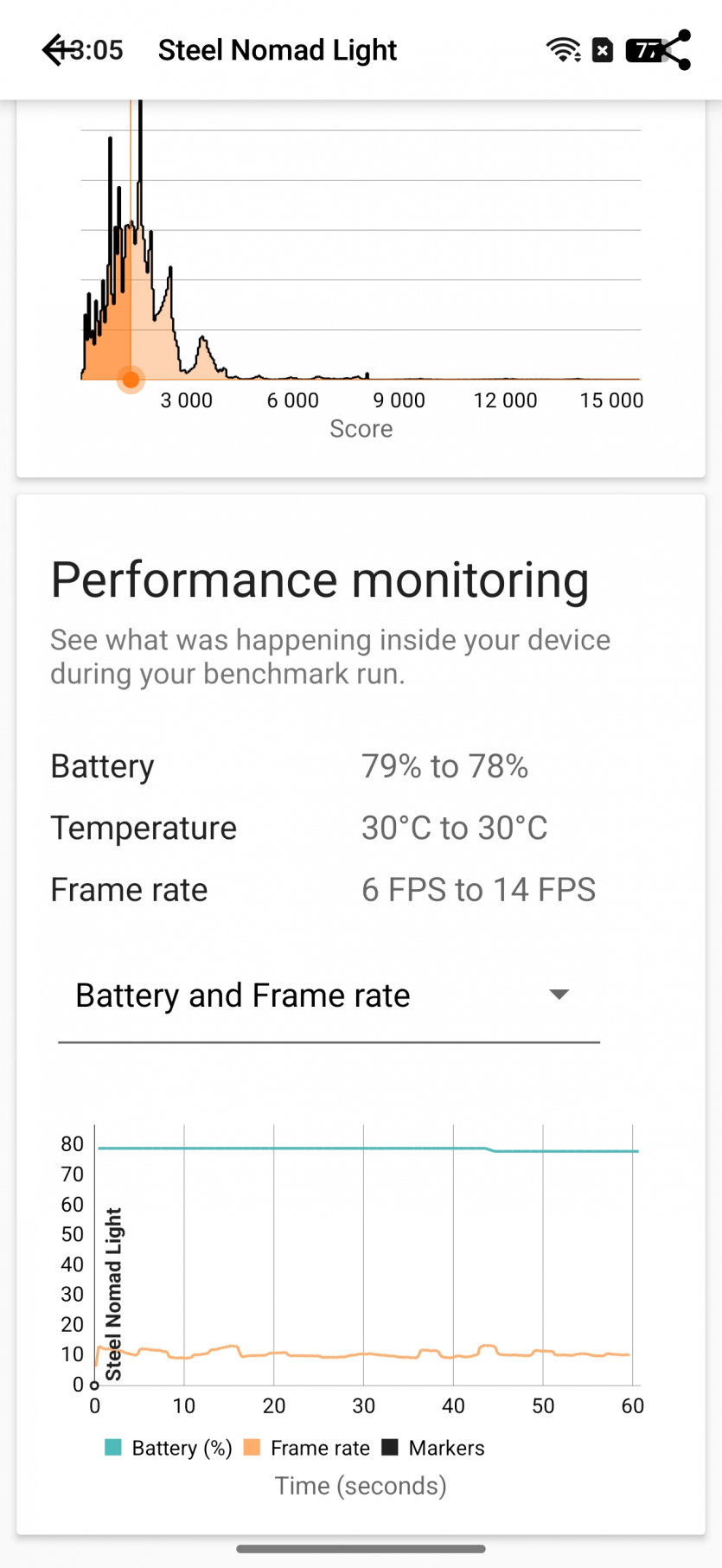Игры идут плавно. Мобильные шутеры и симуляторы на максимальных настройках работают без сильных просадок FPS первые 20-30 минут, но корпус нагревается и система немного снижает частоту ядра Cortex-A78 для стабильности. Но на практике это не ощутимо, пока вы не посмотрите на счетчик кадров.