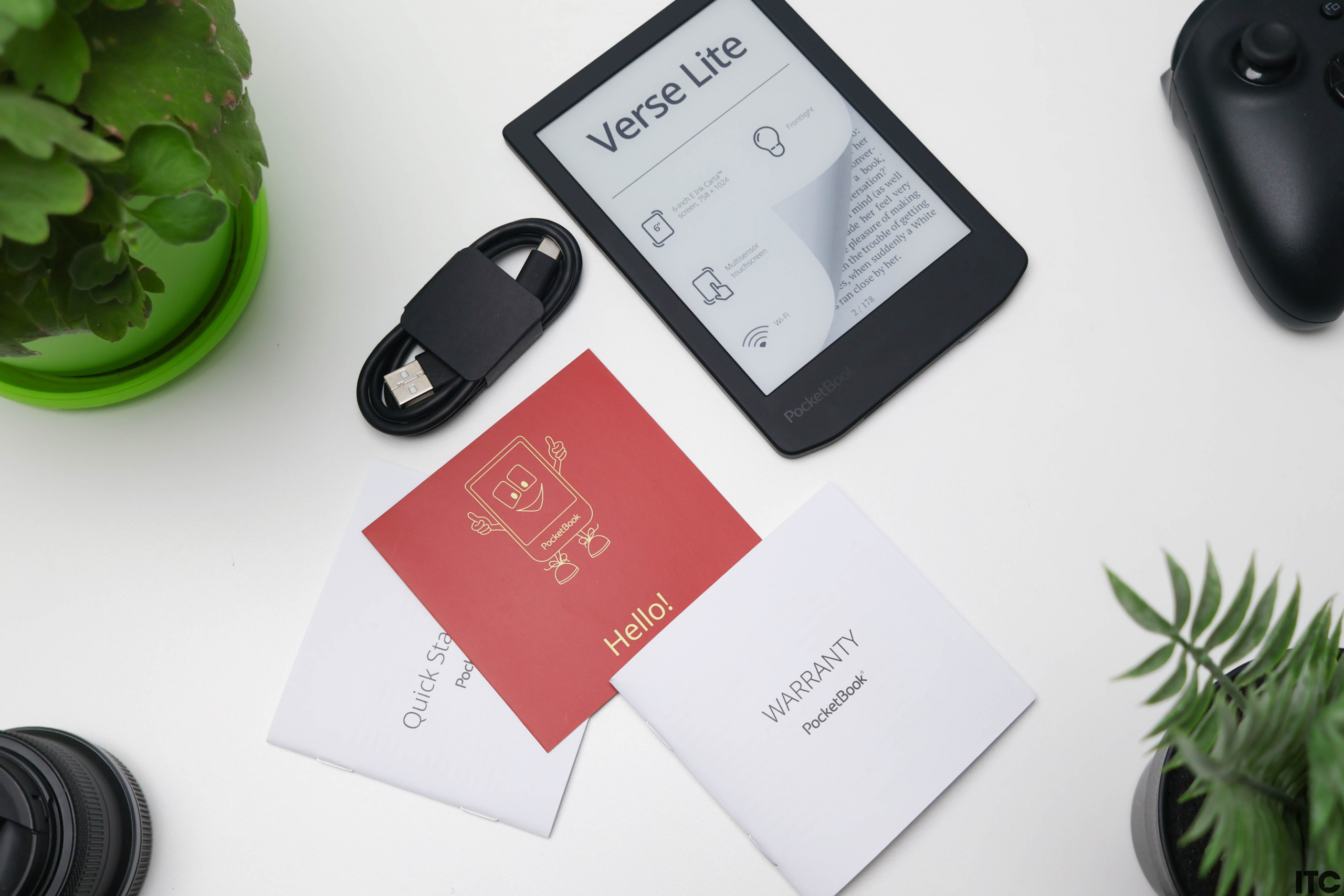 PocketBook Verse Lite поставляется в классической для бренда коробке. Она компактная, экологичная и с минималистичным дизайном. На упаковке виднеется изображение самого ридера и основные характеристики, а также различная информация о модели.
