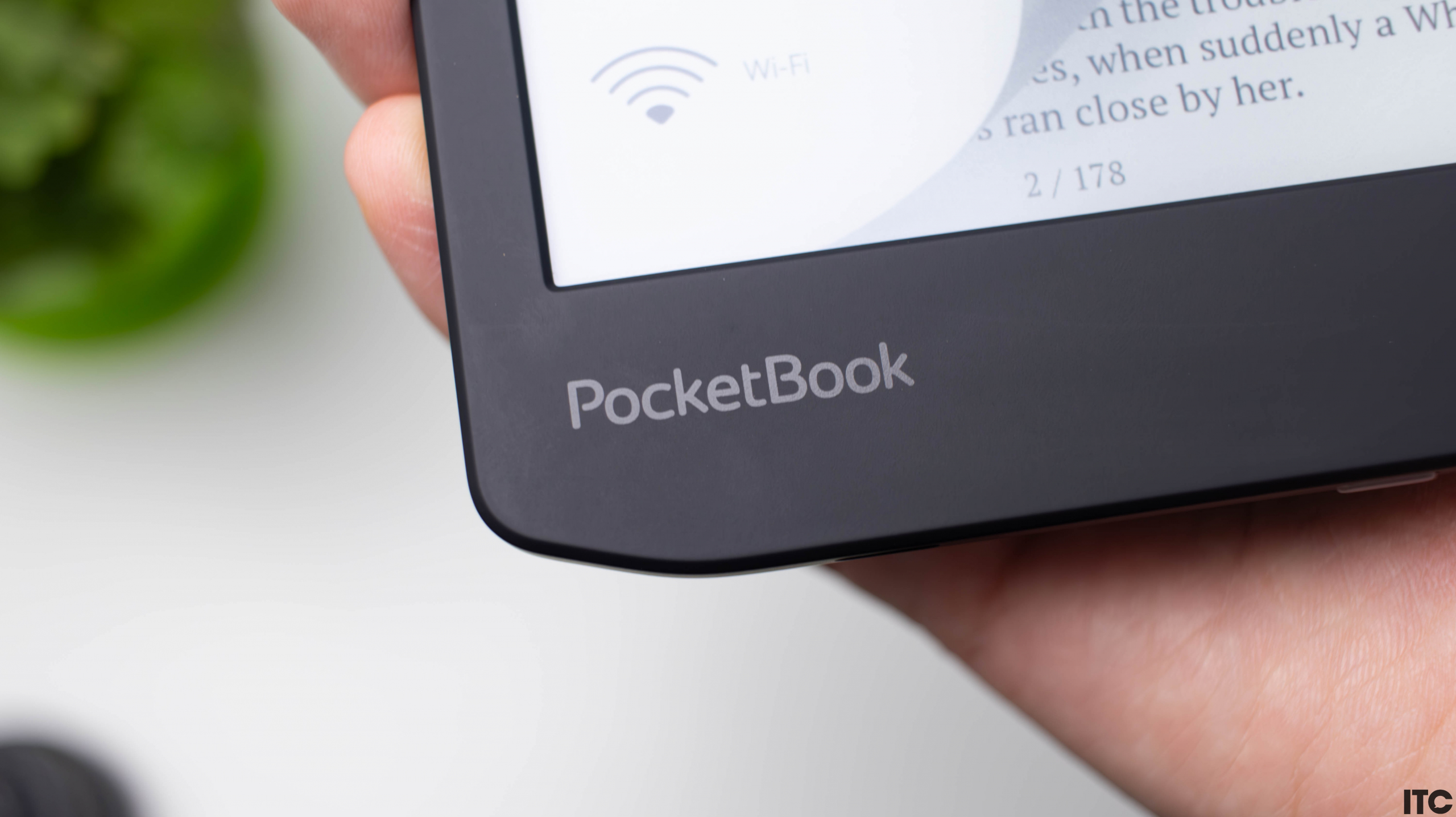Передняя панель традиционно черная с небольшим логотипом PocketBook внизу.