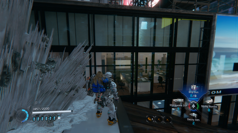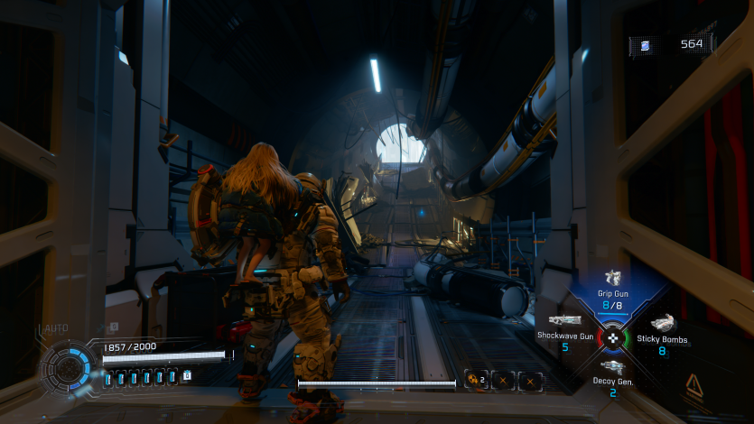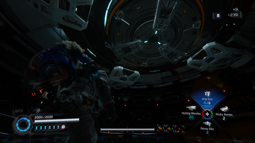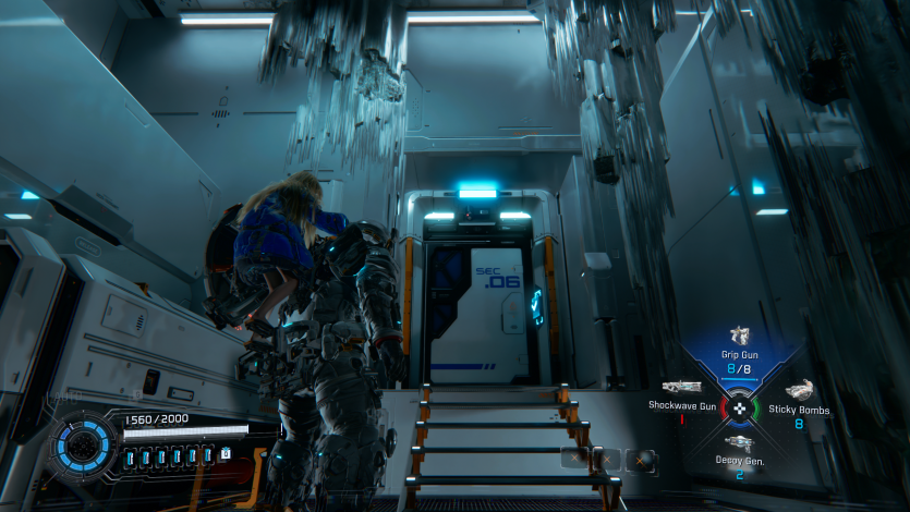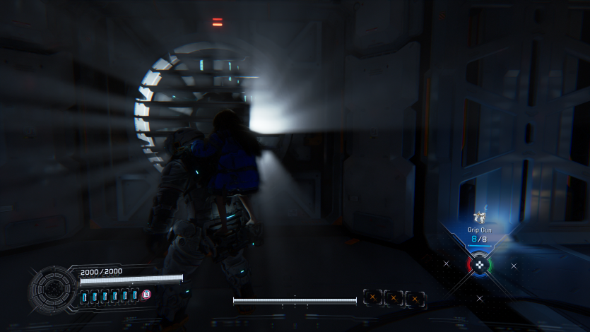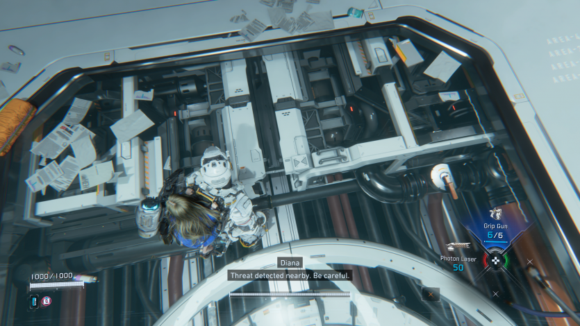 Отдельным плюсом геймплея PRAGMATA является мобильность. У Хью есть ускорение и возможность быстро менять позицию, ведь без движения здесь долго не живешь. Вертикальность уровней и необходимость постоянно менять позицию добавляют динамики.