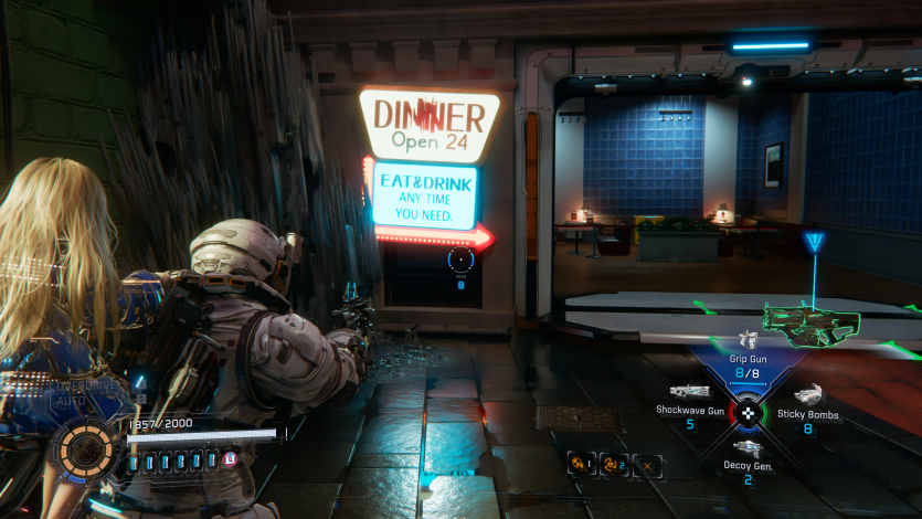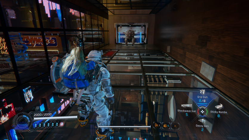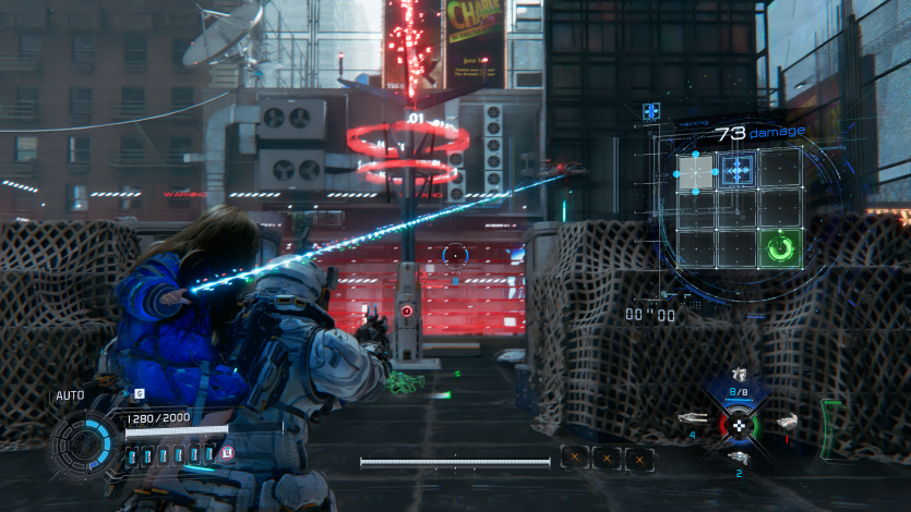 Боевая система построена вокруг Дианы. Она «открывает» врагов через хакинг, буквально ломает их защиту в реальном времени. Без этого любое оружие выглядит как игрушка. И это не метафора, ведь можно потратить целый магазин и не получить нормального эффекта, если не сделал правильный шаг перед этим.