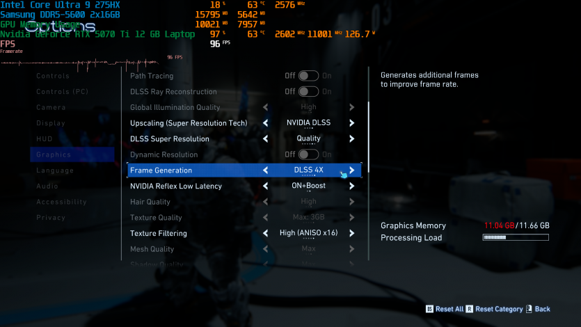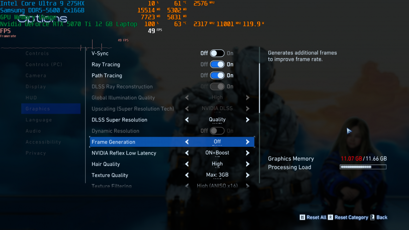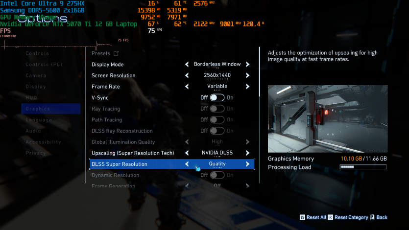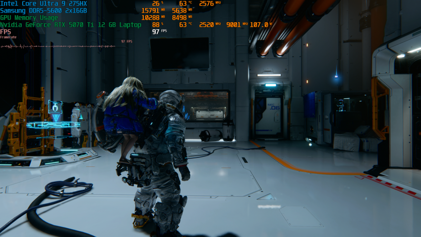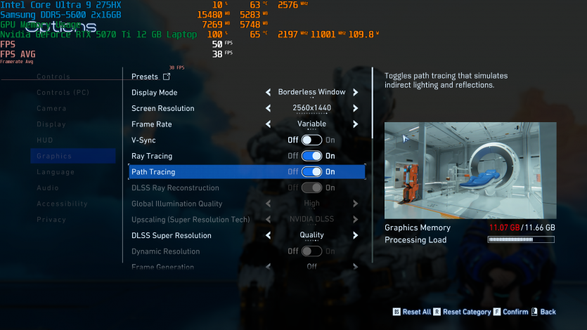 Я проходил PRAGMATA на ноутбуке MSI Vector 16 с RTX 5070 Ti и Intel Core Ultra 9 275HX. На максимальном пресете с включенными Path Tracing и Ray Tracing игра держится на уровне 42 FPS. Это тот режим, где картинка выглядит максимально «дорого», но платишь за это очень конкретной потерей плавности.