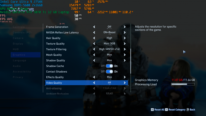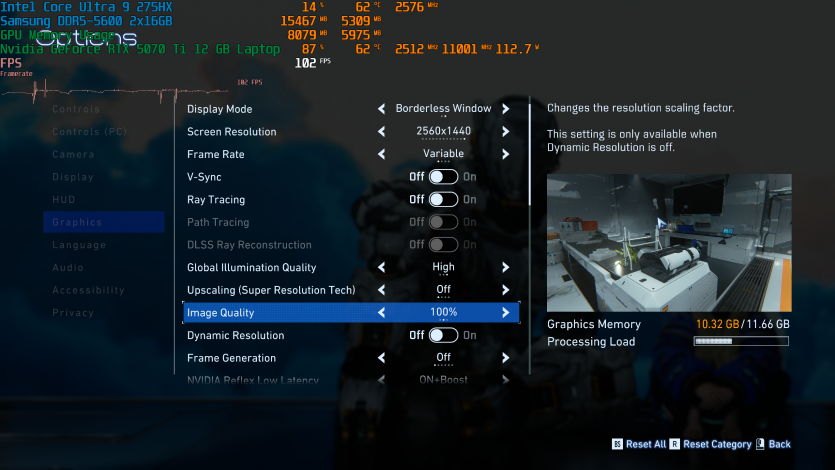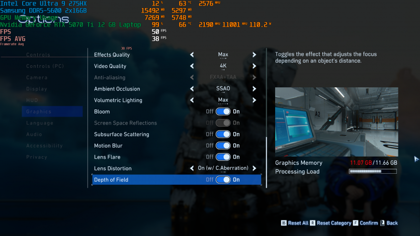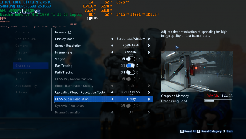 | Max | ON | ON | DLSS Quality | OFF | 42 |