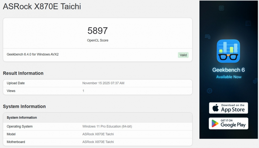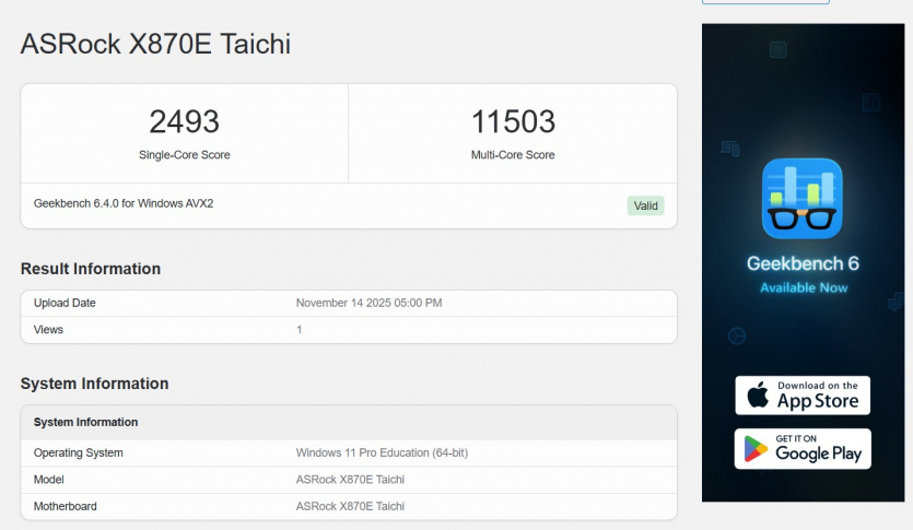 | GeekBench 6 |