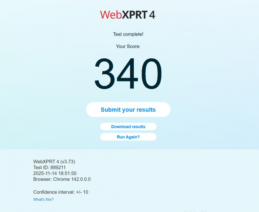 | WebXPRT 4 | 418 | 461 | 341 | 358 | 340 |