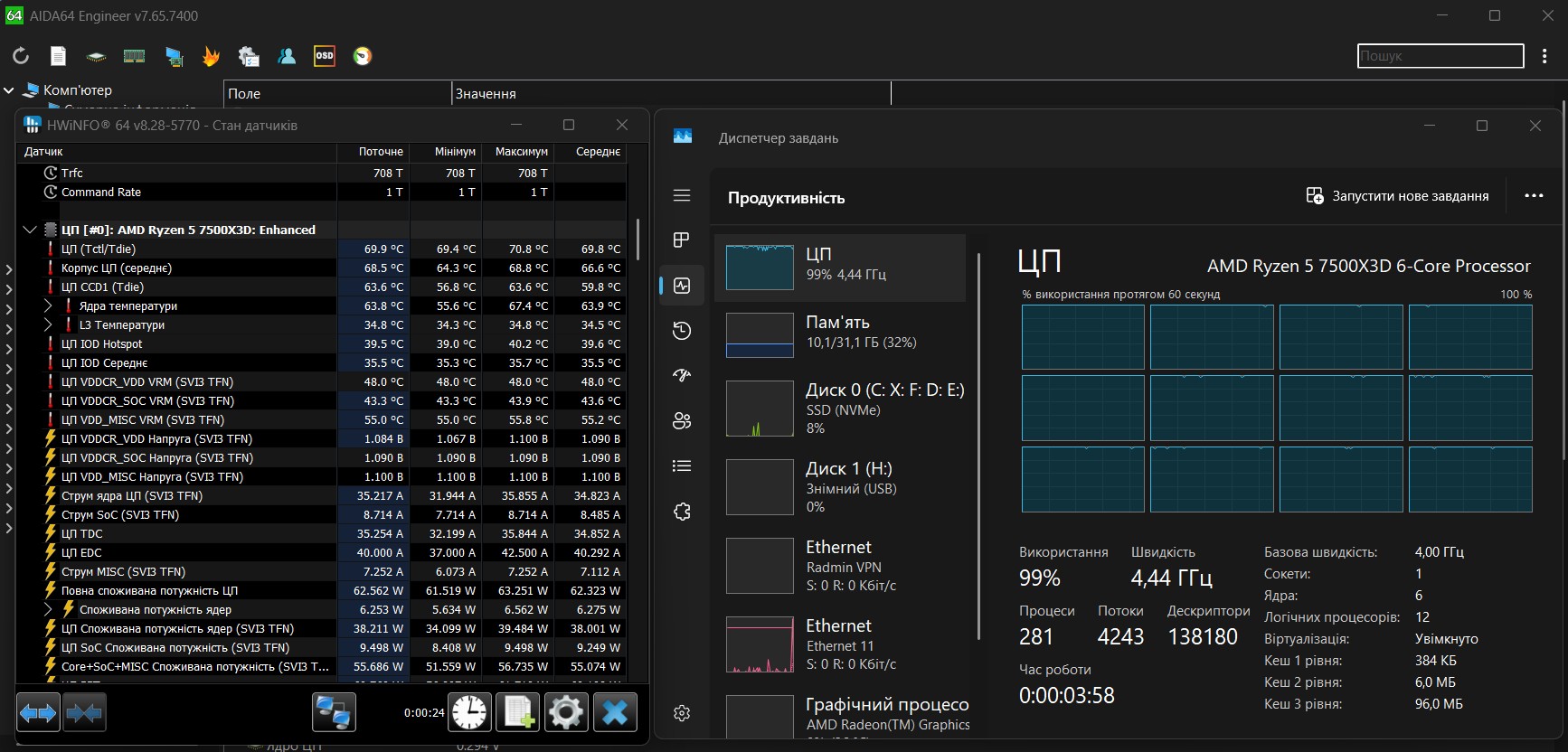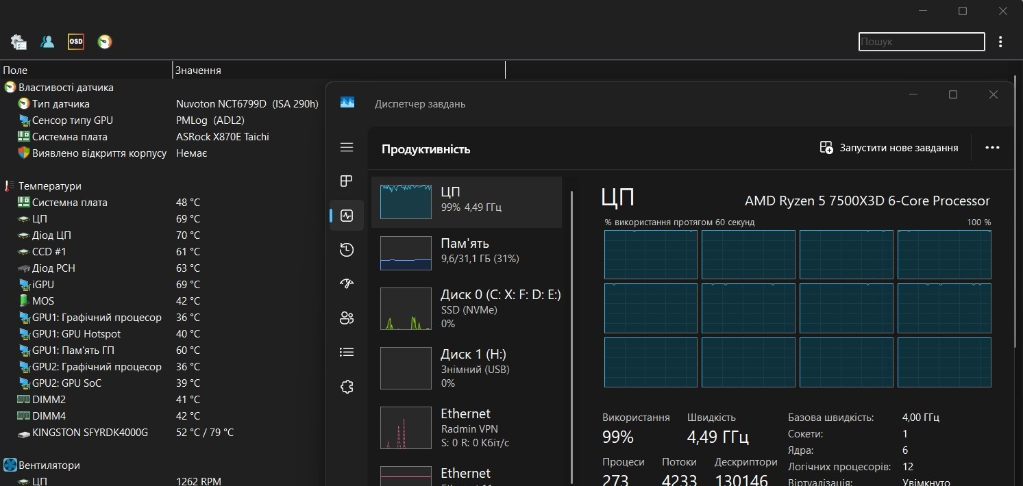 Доложив около тысячи гривен можно купить старшую модель — Ryzen 5 7600X3D. За эти деньги вы получите на 200 МГц большую частоту и более высокие температуры, но большой разницы в играх вы не заметите.