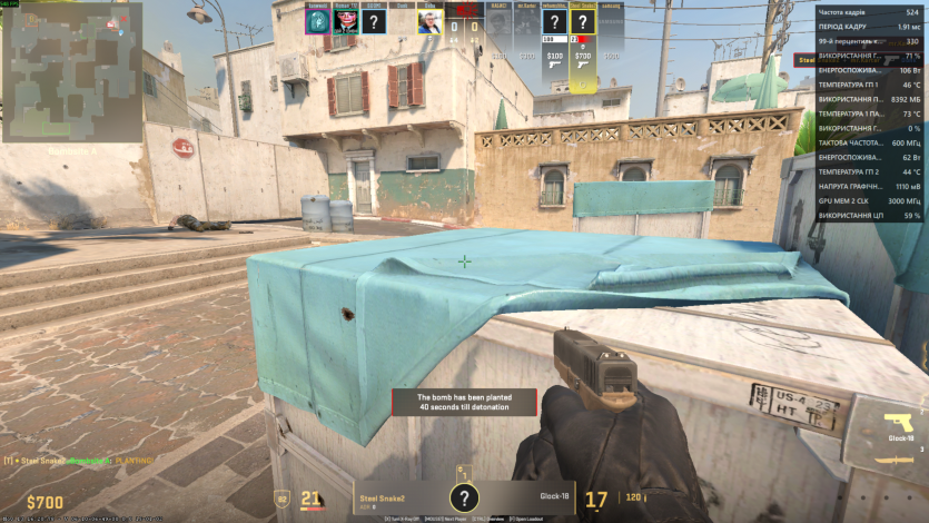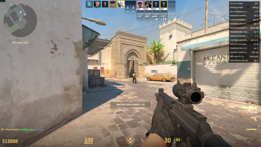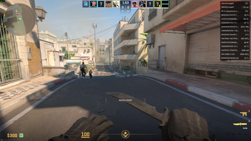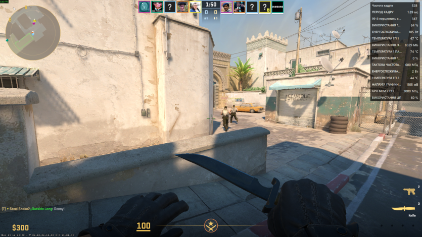В Counter-Strike 2 на киберспортивных настройках в FullHD частота кадров держалась в фарватере 520-550 FPS на легендарном Dust 2. Процессор загружался до 60%.