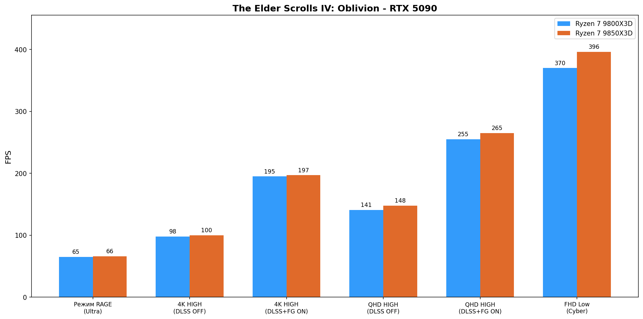 | The Elder Scrolls IV: Oblivion (9800X3D) | 65 | 98 | 195 | 141 | 255 | 370 |