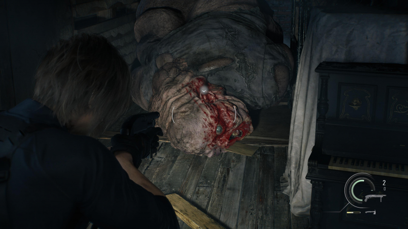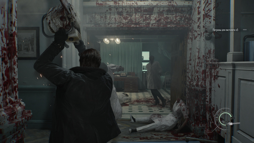 Не могу не сказать о Большой Маме, которая является замечательным и крепким преследователем. Уже она с лихвой компенсирует определенные мои вопросы к виду боссов. Она лезет сквозь стены и потолки, боится яркого света, а каждая встреча с ней превращается в стрессовый тест для нервов. Конечно, это актуально для Грейс, потому что Леону эта дама точно по зубам. Кроме нее на локациях будет еще несколько пугающих подобных созданий, задача которых вызвать у игрока выброс кирпичей из одного места, мешать выполнять задания и вообще думать. С этим все они, по моему мнению, справляются очень хорошо.