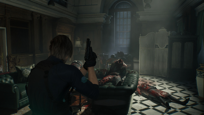 Когда же сюжет переходит к Леону, то это уже не тайники за шкафами, а реальная кровавая заруба с любым мутантом, который попадется на пути. Есть классический инвентарь, куча оружия, которое потом дают прокачивать или заменить на другое. Еще есть автосортировка предметов, парирование ударов и эффектные приемы ногами.