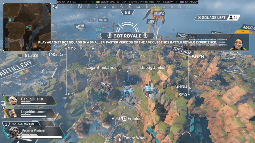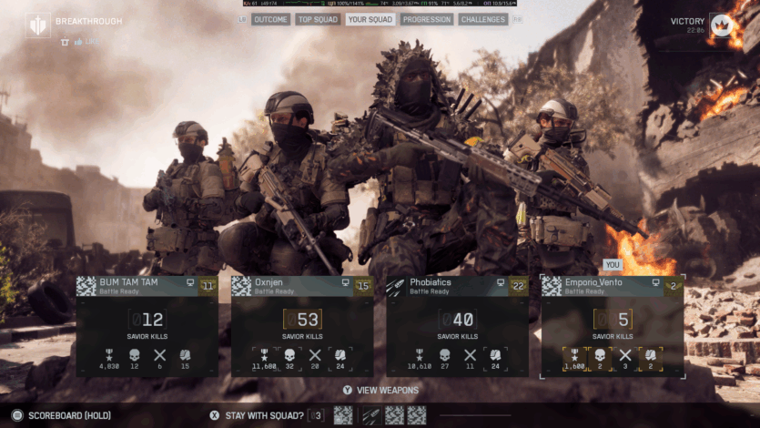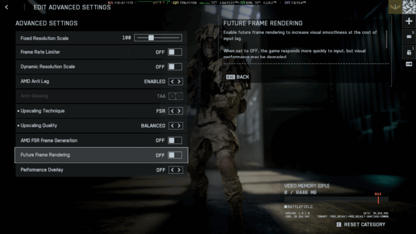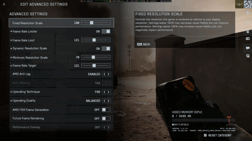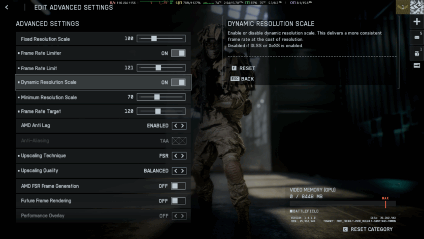Проверку ROG Xbox Ally X в мультиплеерных играх выполним в Apex Legends да новеньком Battlefield 6. Игра имеет встроенную хитрую настройку Adaptive Resolution FPS. Грубо говоря, ради достижения значения лимита на выше, игра будет снижать или увеличивать апскейл изображения. Эта особенность работает настолько хорошо, что в Тихом режиме можно чувствовать себя комфортно.