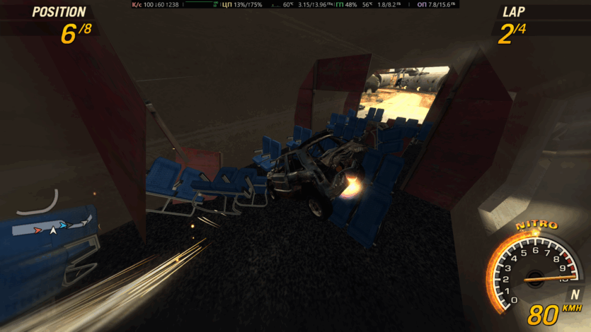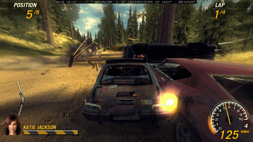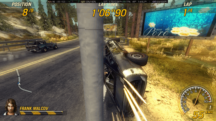 Вспомним молодость и проверим обратную совместимость со старыми гонками в Flatout 2. Система не может держать стабильные 100 fps, что, скорее всего, связано с особенностью игрового движка. Зато стабильные 60 fps обеспечиваются на 13 Вт.