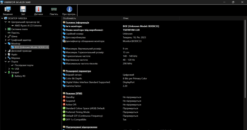 Максимальная частота составляет 120 Гц. И это тоже хороший показатель, который позволяет достигать высокой плавности в работе интерфейса операционной системе и подходит для 2D или простеньких 3D игр.