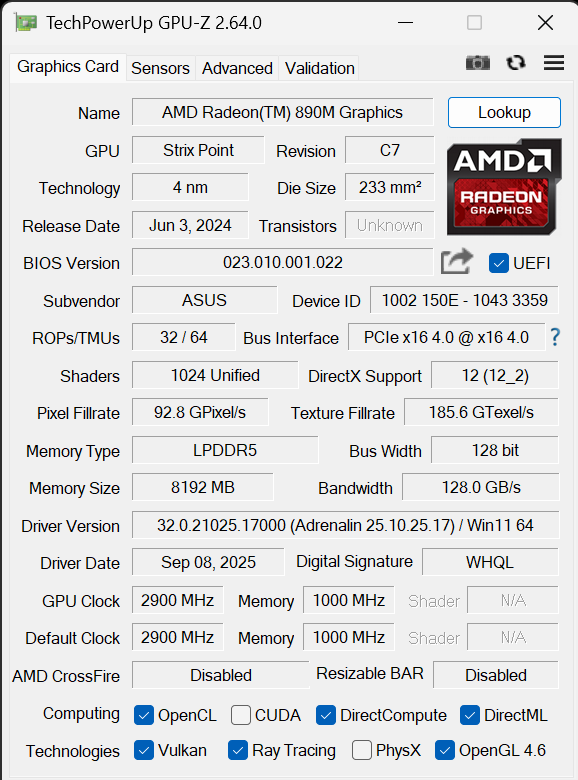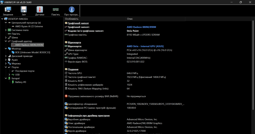Видеокарта | AMD Radeon 890M (8 Гб видеопамяти стандартно выделяется от ОЗУ) |