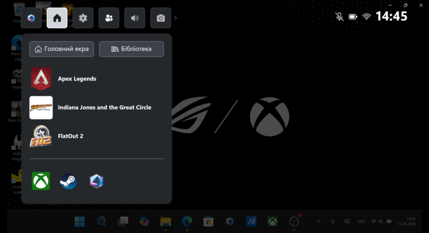 Приложение Game Bar обычно спрятано для обычных пользователей ПК за специальной комбинацией клавиш. Для консолей решено его оживить, поскольку идеально подходит для управления геймпадом. В нем присутствуют: запуск последних игр и программ, мониторинг систем, аналог панели управления, запись скриншотов и видео, новый Игровой Чат-бот и тому подобное. Запускать Armoury Crate SE в большинстве случаев будем именно здесь.