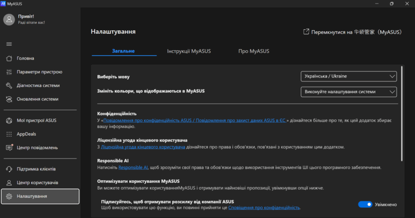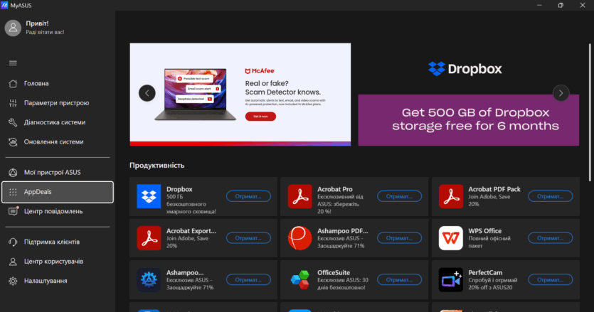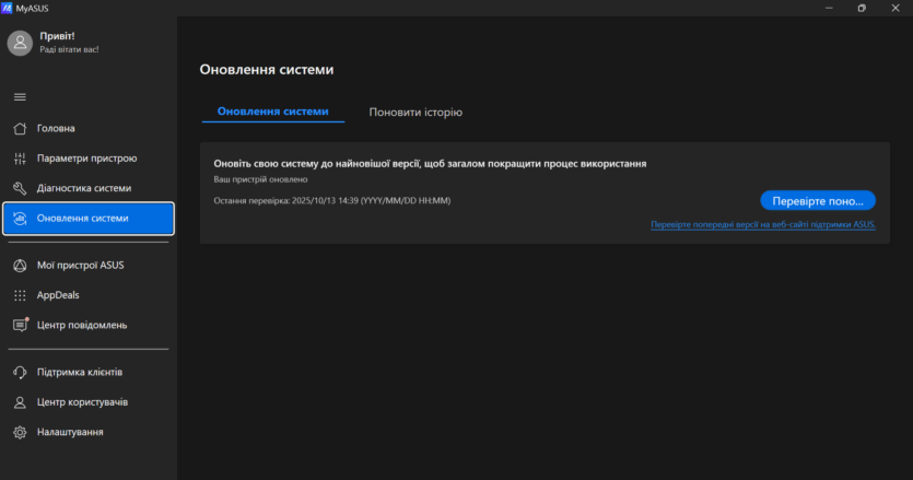MyAsus имеет лаконичный интерфейс пользователя, разобраться в нем будет не сложно. Главная задача приложения — поиск и обновление драйверов для внутренней «начинки» портативной консоли. Запускать нужно периодически для обновлений, поскольку чуть ли не под каждую игру выходят свои графические драйверы для улучшения производительности.