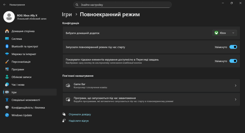 Однако это лишь базовые вещи. Для раскрытия полного потенциала консоли ROG Xbox Ally X запускаем ее полноценную версию с Game Bar. Находим видеосправочники, настройки подсветки, настройки профилей для каждой из игры, энергосбережения, дополнительные обновления системы и тому подобное.